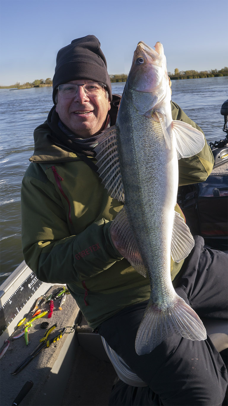 Die mij kent weet dat ik -eens terug helder- een tandje bij steek. Als bij wonder ging het inderdaad los en het was de start van een ongelofelijke namiddag waar we beiden volop in de barbelen zaten… Plots werden ze nog iets groter en er kwam een 76 in het net, even groot als m’n topper tot nog toe. Wakker, dat was ik! We raakten zowat de tel kwijt en ik zette een aantal zeventigers terug zonder foto… ach ja, het maakt niet uit. Maar dan komt er een dril van een vis waarvan je weet dat het een hele beste is… De bleke barbeel meet exact 80 cm, met 5,65 kg… een machtige bak! Wat een moment van ontlading en een fantastisch moment om met je vismaat te delen…