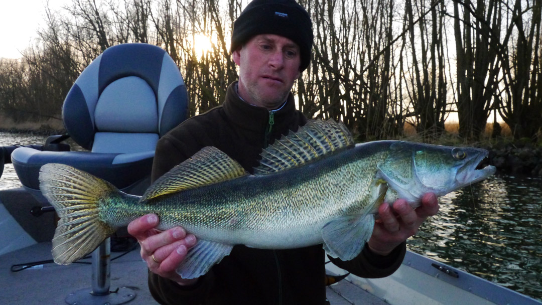 Fons, ga je mee voor een kort dagje op snoekbaars? “Tuurlijk, ik heb nog 19 dagen vrij te nemen dit jaar!” Ik kon slechts laat op pad en hij moest vroeg thuis zijn… Ach, dan maar een kort dagje, we zijn buiten en we leven volop… Bitter koud was het, met de wind min of meer uit het oosten. De watertemperatuur is 2,5 graad gezakt sedert vorige week maar we zagen het hoopvol tegemoet.