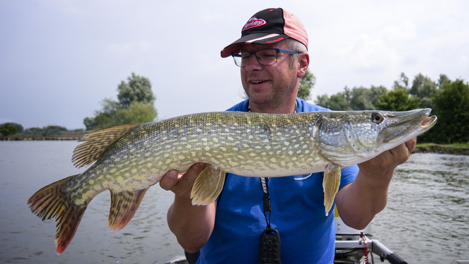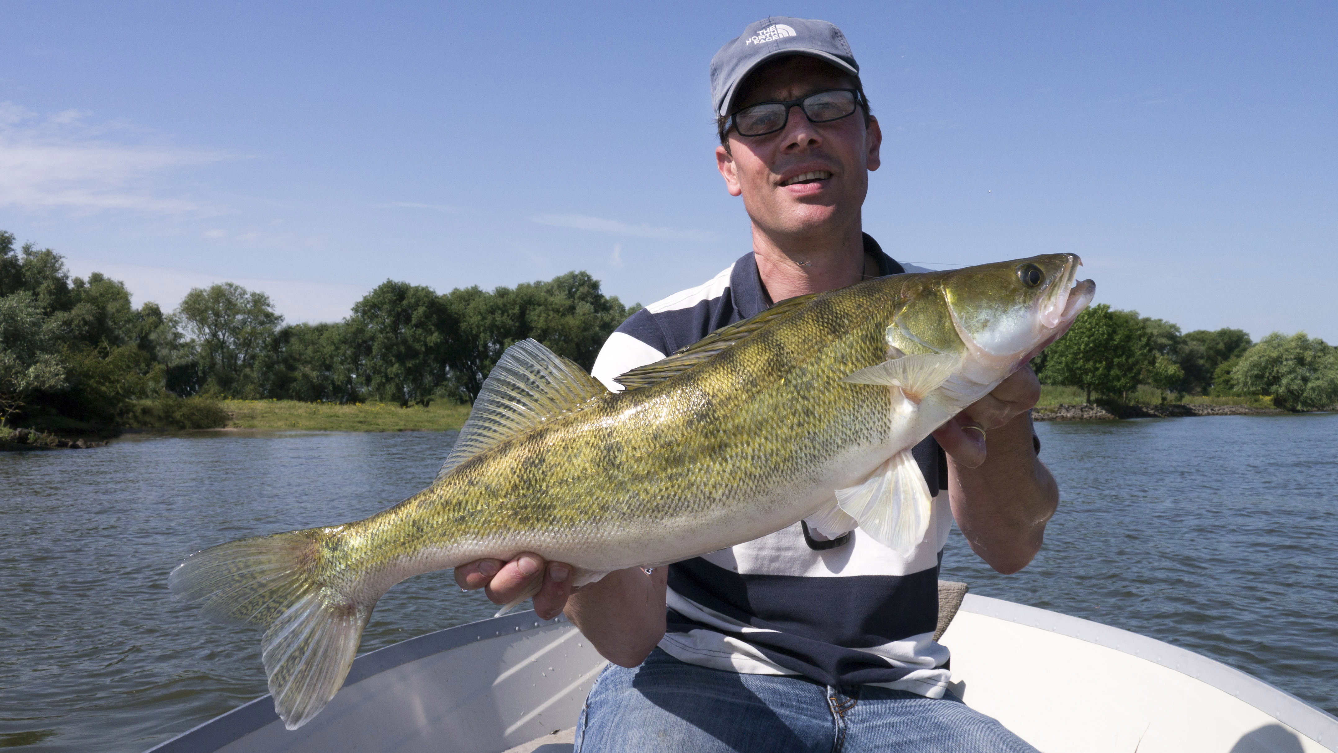 We kwamen Mr. Pike tegen op het water, wat me wel verraste. Hij is niet zo tuk op snoekbaarzen! Maar ik kreeg een leuke foto van ons in de boot toegestuurd, merci daarvoor!