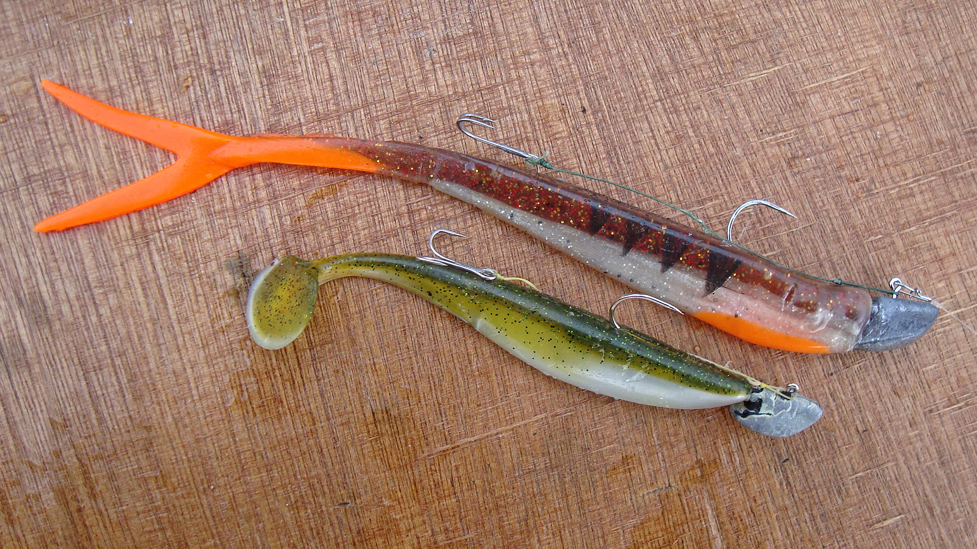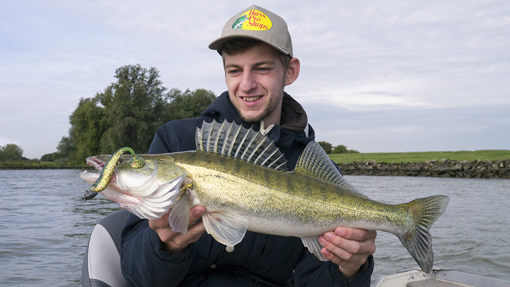 Ik herinner me een uitzonderlijk taaie dag die ik kon ombuigen toen ik bij de vangst van m’n eerste snoekbaars een staart in z’n bek zag zitten. Best een grote aasvis, vond ik. Ik ging de grootste shad die ik bij had in de speld, om prompt actie te krijgen. De taaie dag werd in een goed uurtje omgebouwd tot een klein succes. Toen het donker werd had ik er toch goed een tiental bij gevangen… op groot aas!
