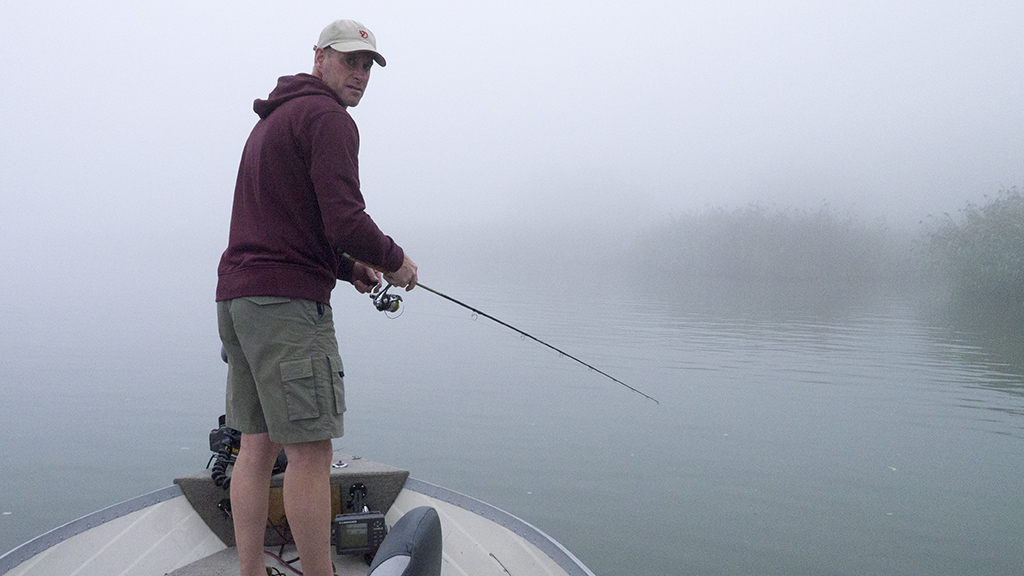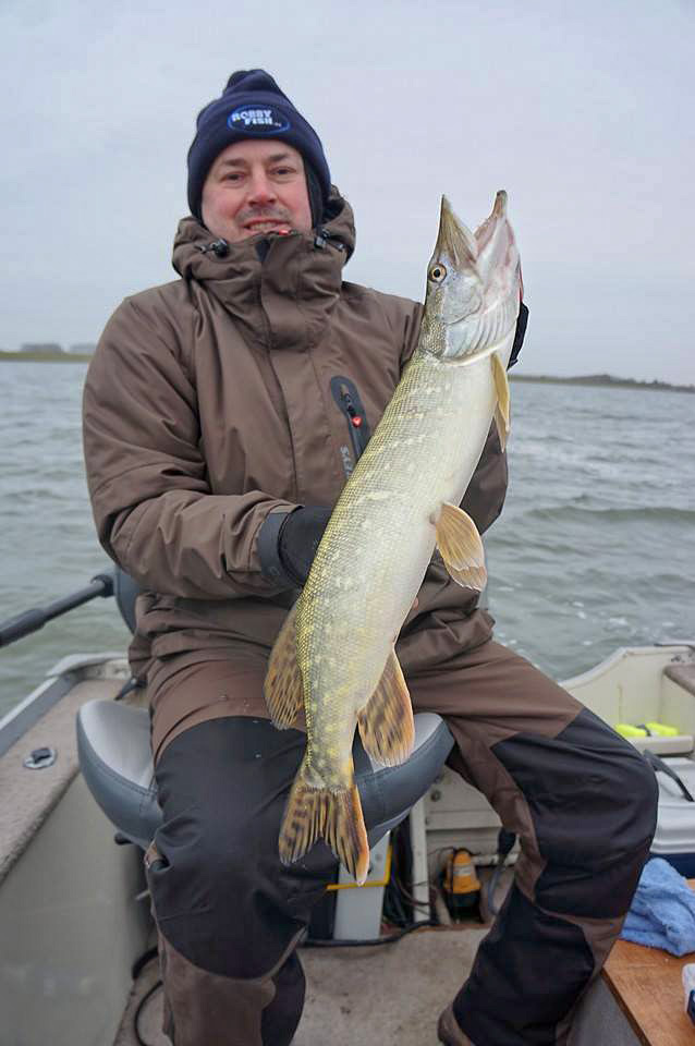 Bij Robbyfish zijn de nieuwe collega’s uiteraard vissers! Op zowel de eerste uitstap met Kevin en de tweede met Dirk was de medewerking van de vis absoluut nul. Op het grote water zag ik met Kevin werkelijk geen hand voor ogen door hardnekkige mist. De boetes daarvoor zijn navenant hoog en ik voelde me niet op m’n gemak. We moesten het doen met een paar snoekbaarzen, een snoek en een baarsjen!