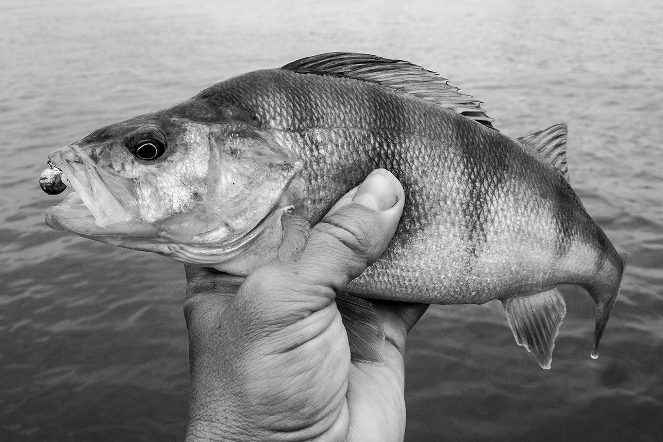 Gisterenavond nog kort gevist en ik waande me eerst in de kleuterklas met een aantal kleine snoekbaarzen… Als laatste aanbeet kreeg ik m’n beloning van de avond, een mooi beest. De foto (van de toevallige voorbijganger) zag er iets beter uit in zwart/wit…