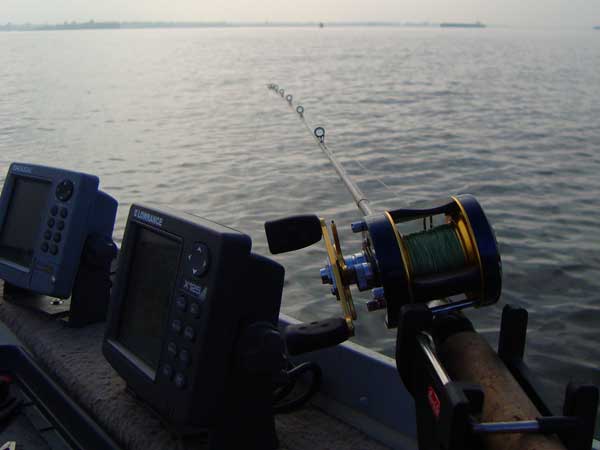 We driften over leuke stekken, de dieptemeter toont prachtige en erg veel bananen. Tien meter is zo een beetje de diepte die we aanhouden. Nu en dan komt een leuke vis boven en ik ben erg gelukkig met deze visdag, ver weg van InDesign, Photoshop en Apple’s. De dag loopt ons zo voorbij en naar de avond toe gaat het met de beet ineens wat beter, en het is ook duidelijk waarom.