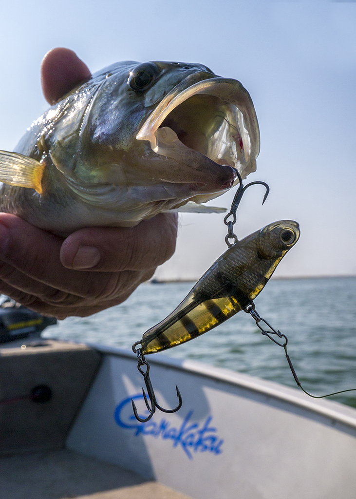 Ik had vorige week goed gevangen (naast de vissen die je al zag, nog een 25-tal baarzen) maar durfde niet te hopen dat er door de warmte nog zoveel vis zou bij elkaar liggen. Was dus wel zo en we harkten op een grote open stek links, rechts en vooruit tientallen baarzen de boot in. Meerdere dubbele hook-ups en vooral dolle pret! Natuurlijk ook wel wat kleintjes maar ook een behoorlijk aantal 30-35 vissen. Plus een rits snoekbaarzen en een leuke snoek. Mijne maat had alles haarfijn bij elkaar geteld en kwam op 68 vissen 🙂 En, Oscar had z’n mooie baars in de boot (met z’n eerste worp begot), de stille genieter…