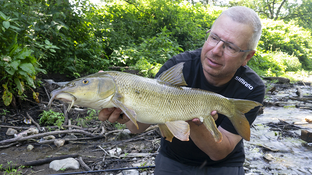 Onze laatste vakantiedag. In de Ardennen was het ietsje frisser dan thuis, 30 graden of zo. Vrij laag water maar nog steeds geen goed doorzicht. De stek van vorige keer voelde niet goed aan, ik kreeg na een uur nog geen teken van leven en dus deden we maar de lange wandeling, al sloffend…