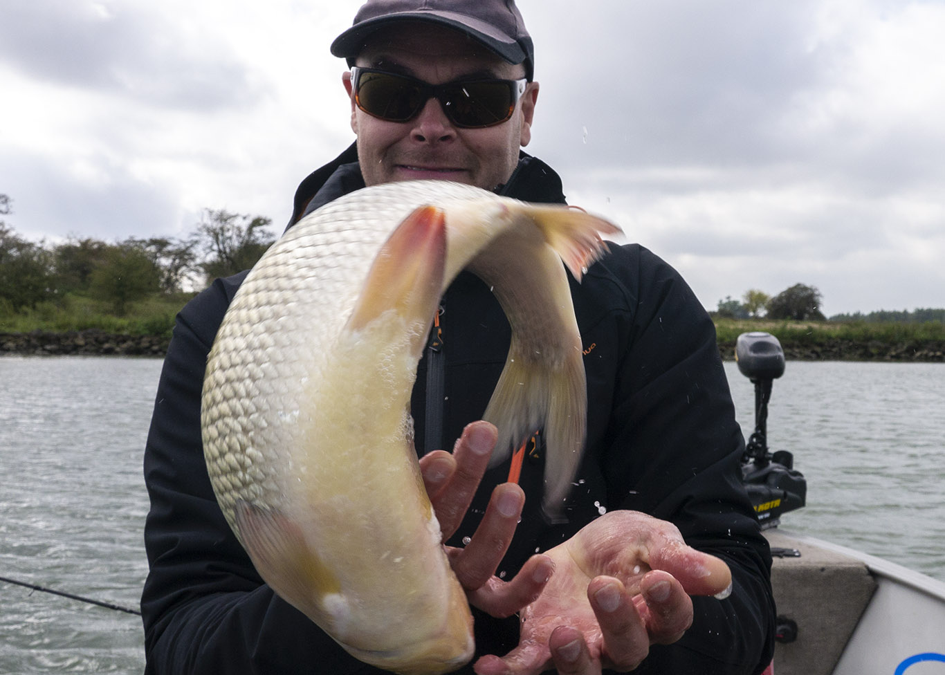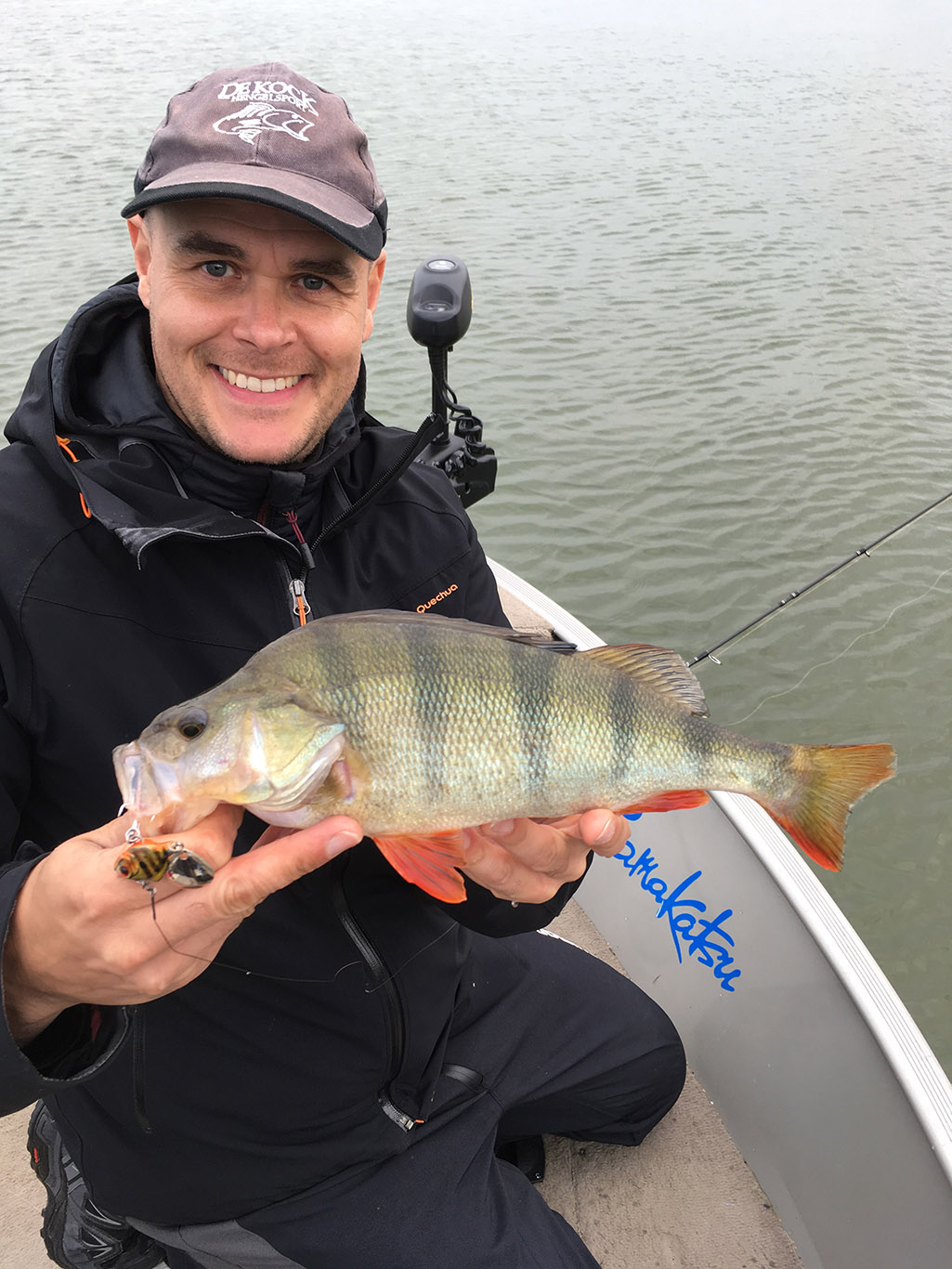 Gisteren had ik David De Cleen als gast op de boot. Het voorspelde grote gevecht met regen en wind bleef uit en het werd een prachtige visdag, somber en duister. De grotere snoekbaarzen kreeg ik niet gevonden en ook al vertikalend werd er weinig geforceerd. Het grootste deel van de dag stroomde het quasi niet en ik vraag me af wat het gevolg gaat zijn als we na dit jaar nog een droog en warm jaar gaan krijgen… Ieder die zegt dat er geen probleem is met het klimaat en milieu is een onvolwassen onozelaar. Het doorzicht in het rivierwater is fenomenaal. Dat maakt dat je structuren onder water kan zien die anders onzichtbaar blijven en je kan daar je voordeel mee doen. Memoriseren die handel! Wat voor ons best werkte was werpen in het kantje met ondiep lopende plugjes en ander klein spul. We eindigden met 22 vissen op het tellertje en we hebben ons heerlijk geamuseerd. Ik besef dat ik m’n vissen te gemakkelijk terugzet zonder foto’s. Bruno Heremans noemt me nu al Blankie… Kan ik mee leven! Waar ik minder mee kan leven is dat bakbeest van een snoek die ik gisteren een minuutje aan had, de hengel tot het handvat plooide en er rustig vandoor ging om dan te lossen… ‘s Avonds had ik het nog eens voor, waarschijnlijk met een dikke baars… Maakt nie uit, het was weeral een prachtige dag op het water!… Aasjes van dienst: de machtige Fox Slick Shad, River2Sea Biggie Smalls, oude vertrouwde Rapala Fat Rap, de mooie Manolo van Hart en de Spro ASP…