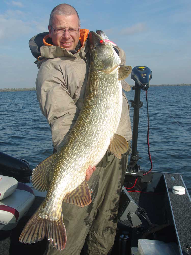 Marc bleef me maar kalmte aanmanen, m’n naam stond er op want anders was ik deze vis al lang verspeeld. Rustig aan Geert, rustig aan. Marc heeft zo te zien geen zenuwen (daarom is hij ook zo’n fijn gezelschap) maar hij was al even opgewonden als ik. Verkrampt drilde ik zo rustig mogelijk verder. Toen ze de eerste keer boven kwam, dat vergeet ik nooit meer, wat een zicht in dit heldere water. Top-Torpedo! Wat een snoek lag daar moegestreden naast de boot.