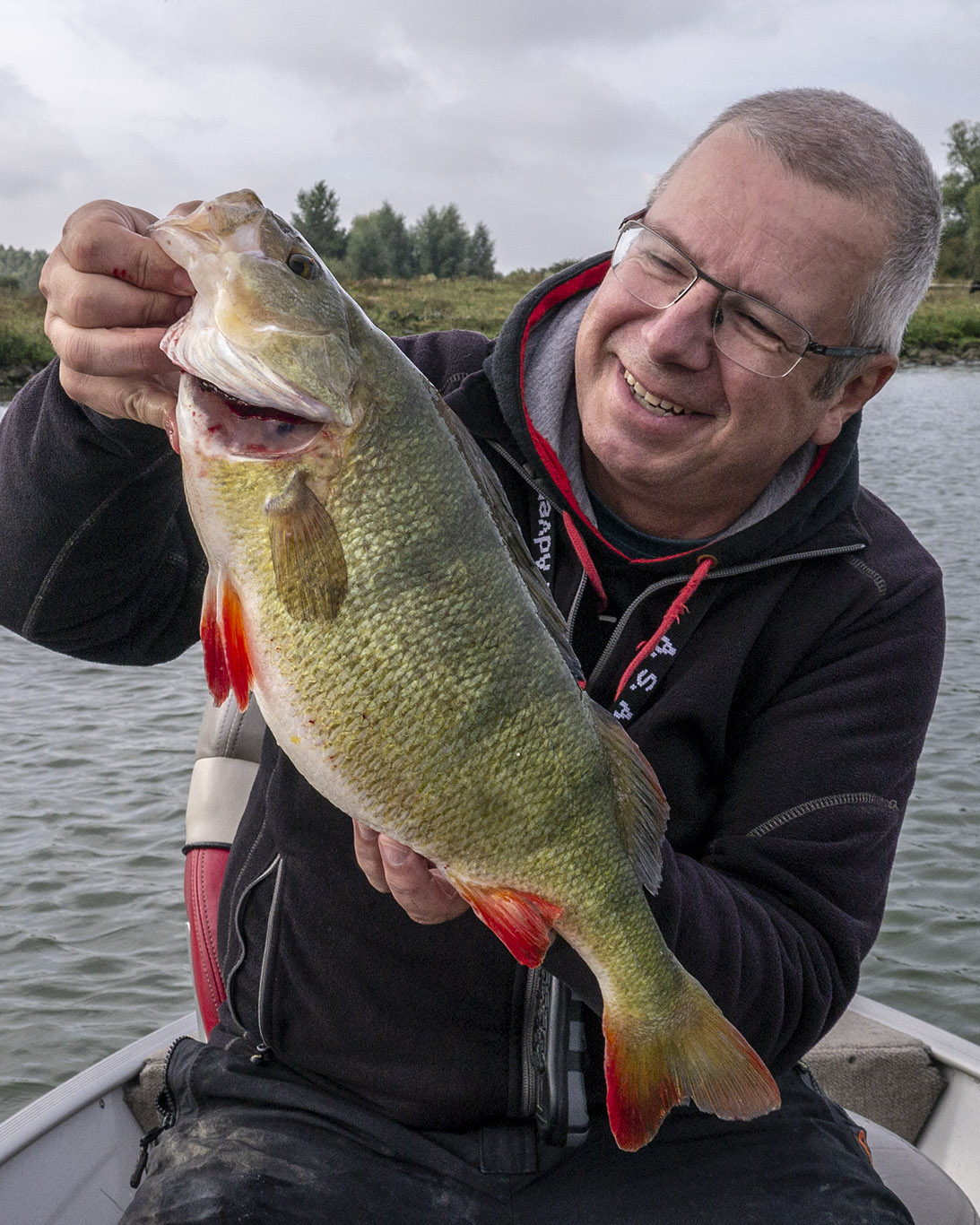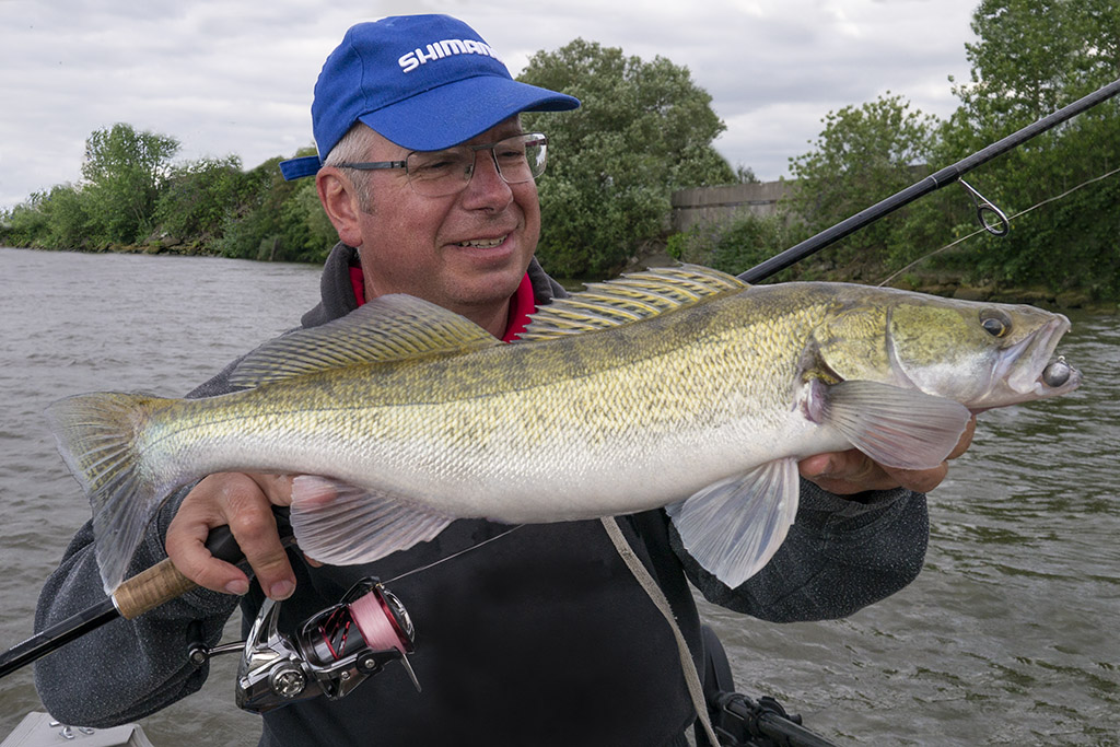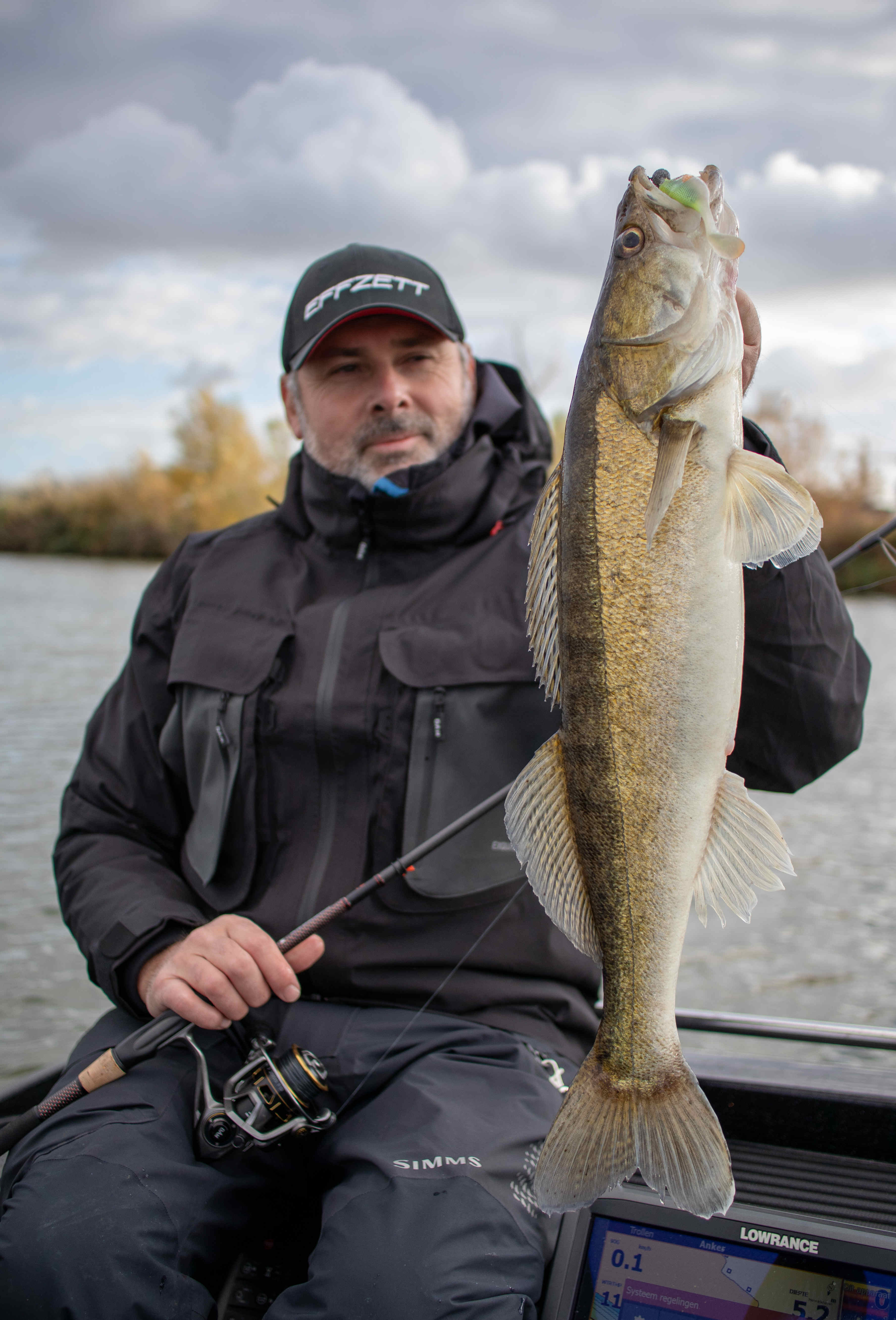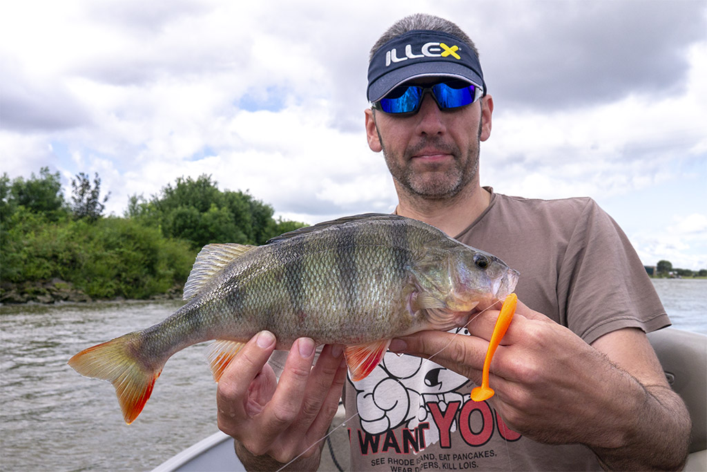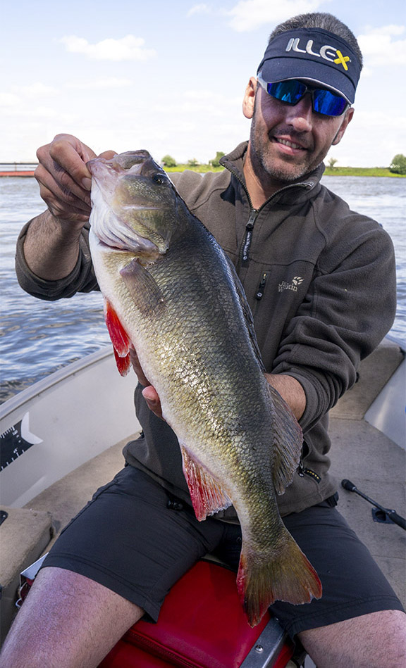 Gisteren had ik David De Cleen als gast op de boot. Het voorspelde grote gevecht met regen en wind bleef uit en het werd een prachtige visdag, somber en duister. De grotere snoekbaarzen kreeg ik niet gevonden en ook al vertikalend werd er weinig geforceerd. Het grootste deel van de dag stroomde het quasi niet en ik vraag me af wat het gevolg gaat zijn als we na dit jaar nog een droog en warm jaar gaan krijgen… Ieder die zegt dat er geen probleem is met het klimaat en milieu is een onvolwassen onozelaar. Het doorzicht in het rivierwater is fenomenaal. Dat maakt dat je structuren onder water kan zien die anders onzichtbaar blijven en je kan daar je voordeel mee doen. Memoriseren die handel! Wat voor ons best werkte was werpen in het kantje met ondiep lopende plugjes en ander klein spul. We eindigden met 22 vissen op het tellertje en we hebben ons heerlijk geamuseerd. Ik besef dat ik m’n vissen te gemakkelijk terugzet zonder foto’s. Bruno Heremans noemt me nu al Blankie… Kan ik mee leven! Waar ik minder mee kan leven is dat bakbeest van een snoek die ik gisteren een minuutje aan had, de hengel tot het handvat plooide en er rustig vandoor ging om dan te lossen… ‘s Avonds had ik het nog eens voor, waarschijnlijk met een dikke baars… Maakt nie uit, het was weeral een prachtige dag op het water!… Aasjes van dienst: de machtige Fox Slick Shad, River2Sea Biggie Smalls, oude vertrouwde Rapala Fat Rap, de mooie Manolo van Hart en de Spro ASP…