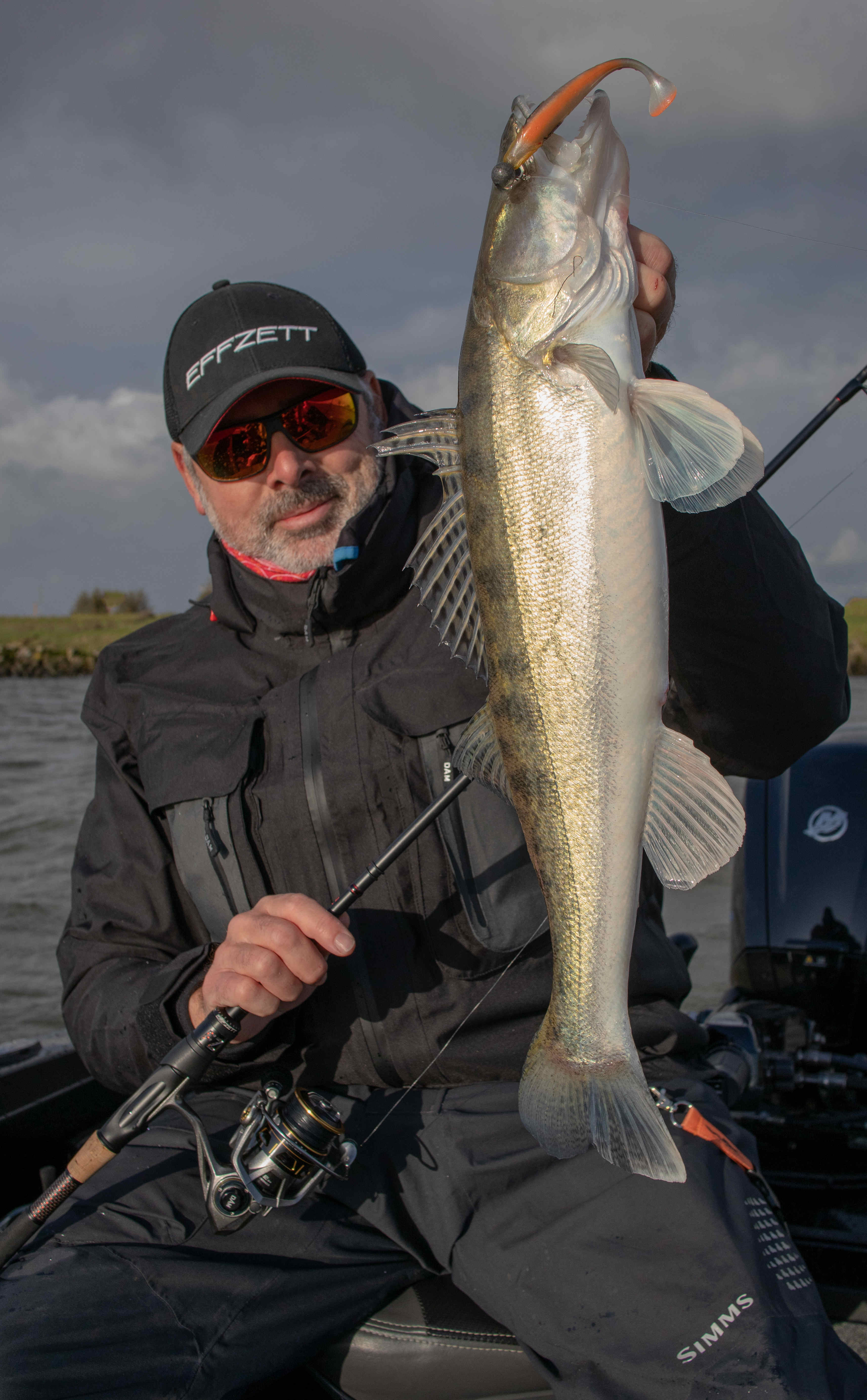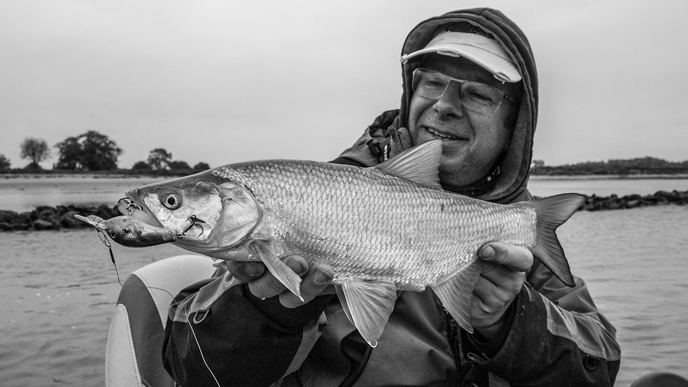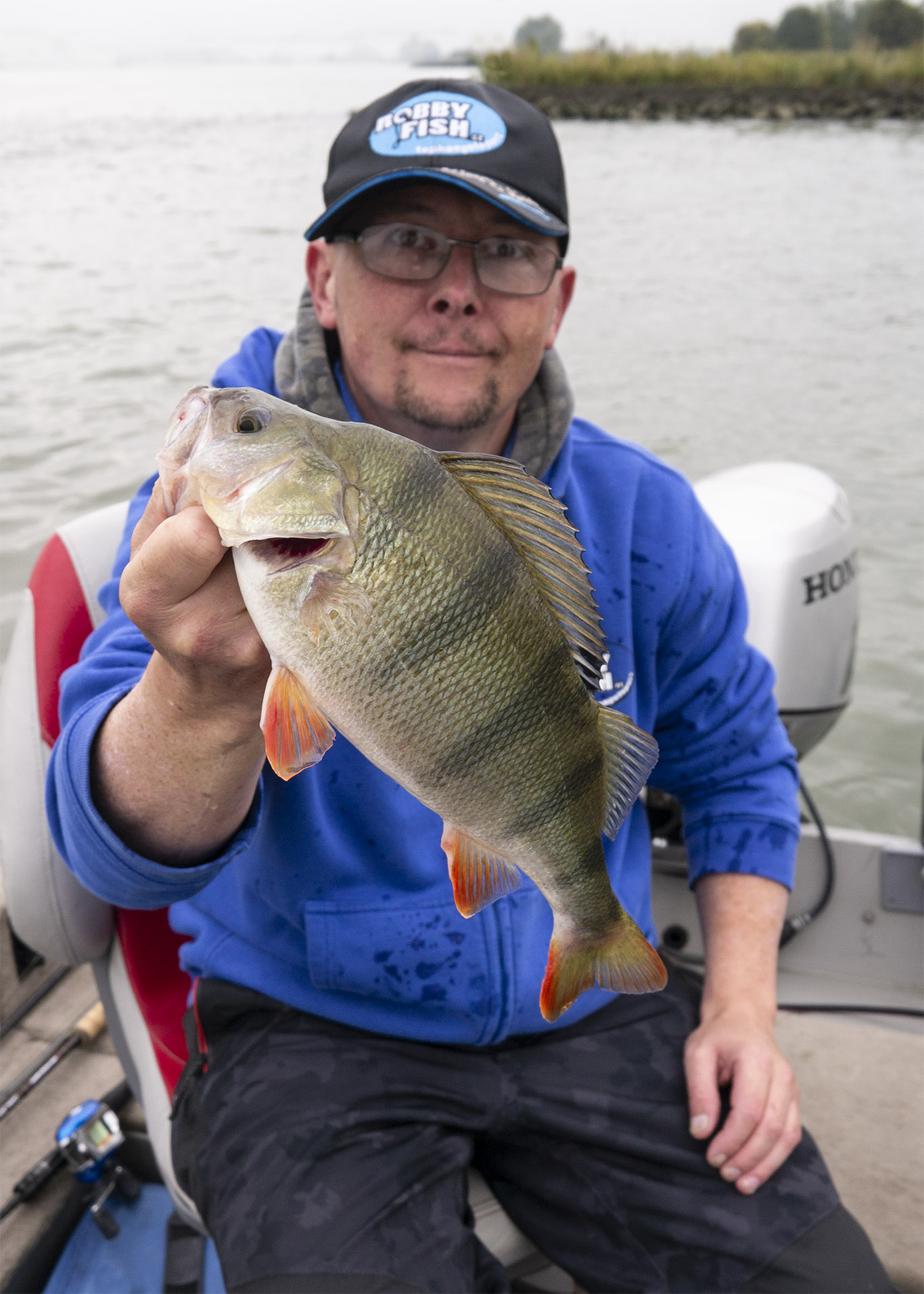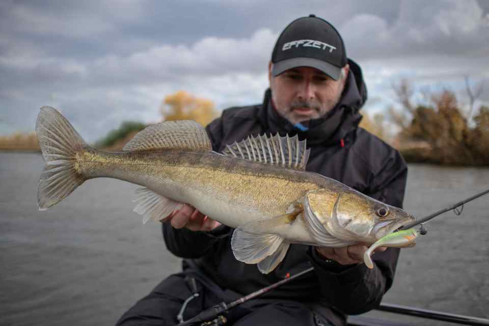 Gisteren had ik David De Cleen als gast op de boot. Het voorspelde grote gevecht met regen en wind bleef uit en het werd een prachtige visdag, somber en duister. De grotere snoekbaarzen kreeg ik niet gevonden en ook al vertikalend werd er weinig geforceerd. Het grootste deel van de dag stroomde het quasi niet en ik vraag me af wat het gevolg gaat zijn als we na dit jaar nog een droog en warm jaar gaan krijgen… Ieder die zegt dat er geen probleem is met het klimaat en milieu is een onvolwassen onozelaar. Het doorzicht in het rivierwater is fenomenaal. Dat maakt dat je structuren onder water kan zien die anders onzichtbaar blijven en je kan daar je voordeel mee doen. Memoriseren die handel! Wat voor ons best werkte was werpen in het kantje met ondiep lopende plugjes en ander klein spul. We eindigden met 22 vissen op het tellertje en we hebben ons heerlijk geamuseerd. Ik besef dat ik m’n vissen te gemakkelijk terugzet zonder foto’s. Bruno Heremans noemt me nu al Blankie… Kan ik mee leven! Waar ik minder mee kan leven is dat bakbeest van een snoek die ik gisteren een minuutje aan had, de hengel tot het handvat plooide en er rustig vandoor ging om dan te lossen… ‘s Avonds had ik het nog eens voor, waarschijnlijk met een dikke baars… Maakt nie uit, het was weeral een prachtige dag op het water!… Aasjes van dienst: de machtige Fox Slick Shad, River2Sea Biggie Smalls, oude vertrouwde Rapala Fat Rap, de mooie Manolo van Hart en de Spro ASP…