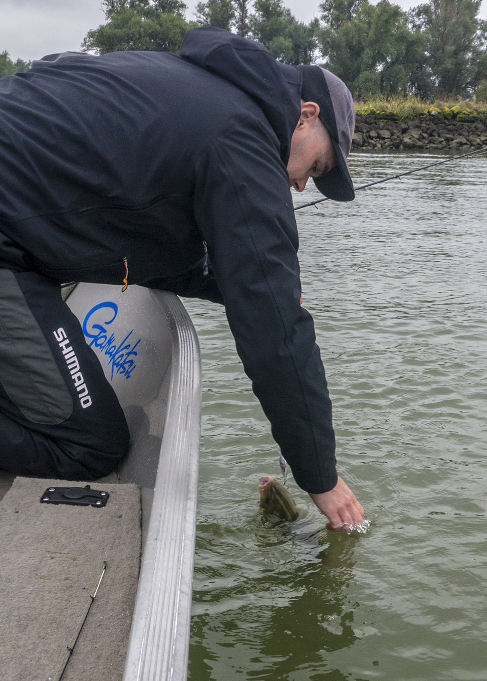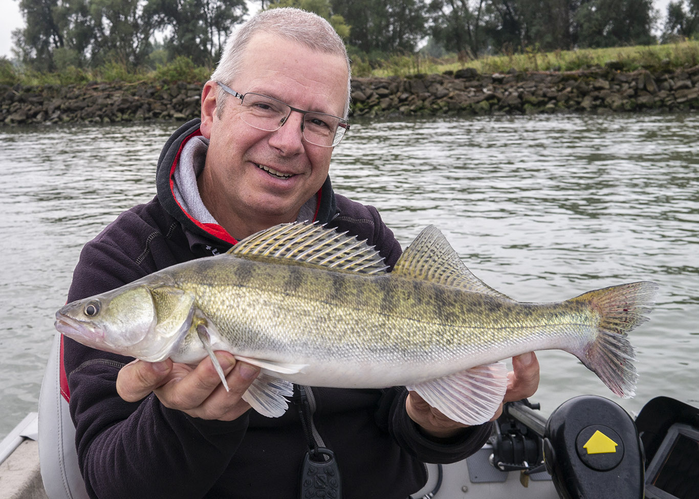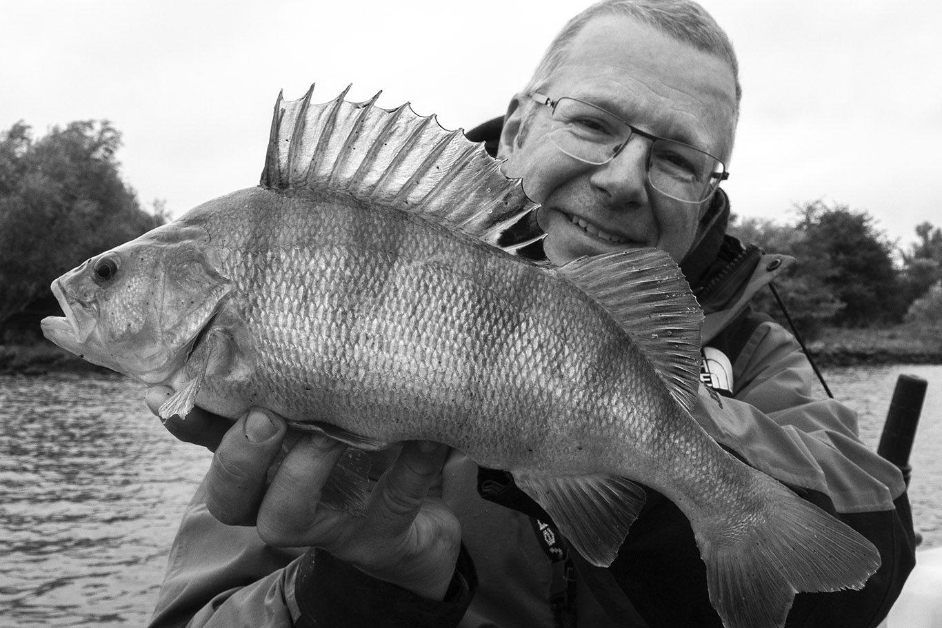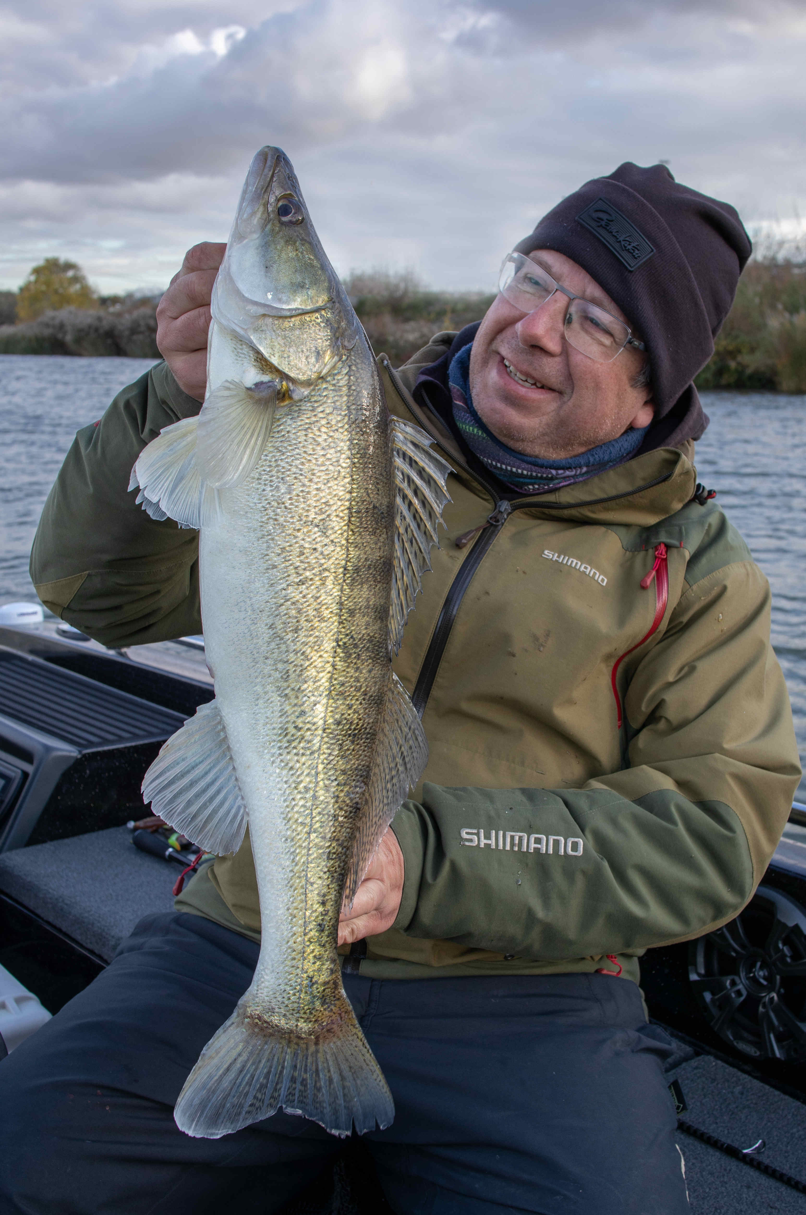 Gisteren had ik David De Cleen als gast op de boot. Het voorspelde grote gevecht met regen en wind bleef uit en het werd een prachtige visdag, somber en duister. De grotere snoekbaarzen kreeg ik niet gevonden en ook al vertikalend werd er weinig geforceerd. Het grootste deel van de dag stroomde het quasi niet en ik vraag me af wat het gevolg gaat zijn als we na dit jaar nog een droog en warm jaar gaan krijgen… Ieder die zegt dat er geen probleem is met het klimaat en milieu is een onvolwassen onozelaar. Het doorzicht in het rivierwater is fenomenaal. Dat maakt dat je structuren onder water kan zien die anders onzichtbaar blijven en je kan daar je voordeel mee doen. Memoriseren die handel! Wat voor ons best werkte was werpen in het kantje met ondiep lopende plugjes en ander klein spul. We eindigden met 22 vissen op het tellertje en we hebben ons heerlijk geamuseerd. Ik besef dat ik m’n vissen te gemakkelijk terugzet zonder foto’s. Bruno Heremans noemt me nu al Blankie… Kan ik mee leven! Waar ik minder mee kan leven is dat bakbeest van een snoek die ik gisteren een minuutje aan had, de hengel tot het handvat plooide en er rustig vandoor ging om dan te lossen… ‘s Avonds had ik het nog eens voor, waarschijnlijk met een dikke baars… Maakt nie uit, het was weeral een prachtige dag op het water!… Aasjes van dienst: de machtige Fox Slick Shad, River2Sea Biggie Smalls, oude vertrouwde Rapala Fat Rap, de mooie Manolo van Hart en de Spro ASP…