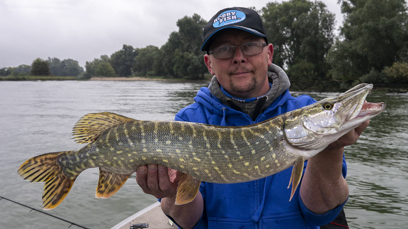 Met slechts een goede handvol snoekbaarzen besloten Frans en ik onze zaterdag op een Nederlandse rivier, maar we hadden toch een heerlijke dag met Raiders en gebakken ballekes met mosterd, hé Frans?… Al werpend wilde het deze keer helemaal niet lukken maar gelukkig lagen de vertikaalhengels ook in de boot. We trailerden net voor het flinke onweer en reden breed lachend naar huis!… Gisteren reed ik met Johan de andere kant uit, op zoek naar roofblei. De ravage van de overstromingen werd pas goed duidelijk tijdens het struinen door de modder en laag struikgewas. De ‘plastic soup’ op de oceaan begint al in Luik en de hoeveelheid troep is onbeschrijfelijk, van skibotten tot mooi terrashout, injectiespuiten, hakhout, bomen en vooral veel huishoudmateriaal en kapotgeslagen isolatiemateriaal… Johan vist een bordje op met handgeschilderde letters: ‘The bar is open’ en ik tracht me voor te stellen waar dit ergens vandaan komt… Bon, we hebben natuurlijk ook gevist en het ging deze keer lekker met keiharde aanbeten en leuke aantallen, ondanks de pittige stroming. Of nee, ‘t is dankzij… Ook een snoek en een flinke baars lieten zich vangen uit het kantje. We deden een paar nieuwe stekken aan en ook daar leverde het op.We wisten het onweer te ontwijken door als softies in de auto te gaan zitten, maar ach, we worden ook al wat ouder, hé! Wilfried (die met de duurste Westin hengel) passeert net en lacht ons er een beetje mee uit, het is best ook wel grappig. Hij lacht minder als hij onze resultaten hoort. We hebben gisteren een hoop geleerd over wat wel en niet werkt en dat gaat later zeker z’n resultaten afwerpen. Wél jammer van die ene mooie die met een luide knal door m’n 28/00 fluorocarbon voorslag ging en zo m’n enige Illex plugje meenam naar de kolken… Topdag en een heerlijk weekend! Minpunt: een Lunchgarden die alleen nog ballekes in tomatensaus heeft, met friet of puree. Maakt dat eens mee.