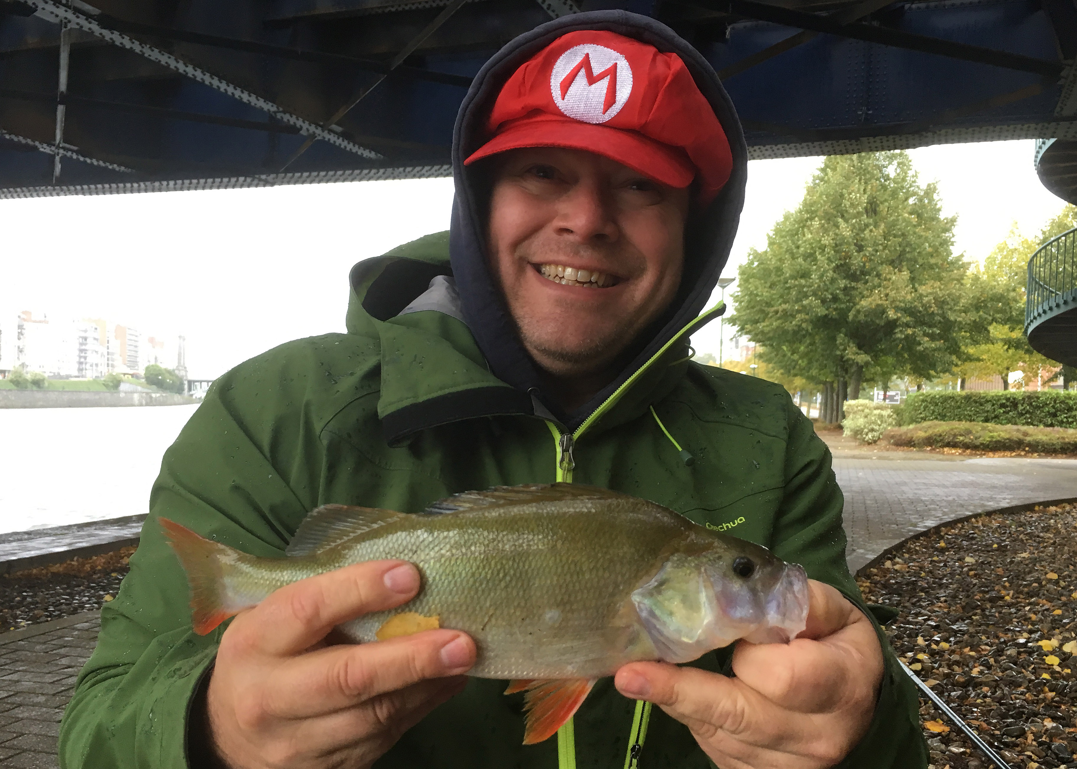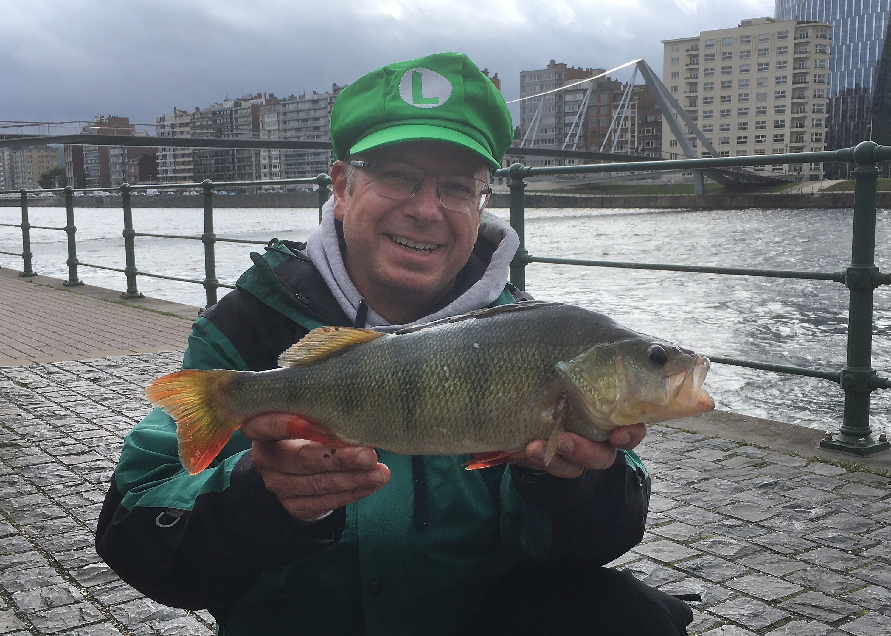 Zonder stekinfo en voorbereiding trok team Mario & Luigi naar Open Street Luik… Ik ken Wim Hanssen niet zo goed, dus ‘t was een beetje afwachten. Onnodig. Man, wat kan die man -net als ik- wat afbabbelen! 😉 We hebben ons bijzonder goe geamuseerd en ook nog eens beenhard door gevist, ondanks de brute weersomstandigheden op hoge kades die het secuur vissen bemoeilijkten. ‘s Morgens startte het met pech met een aantal geloste snoekbaarzen en ik troostte me met de gedachte dat ze de maat niet haalden. De minimummaten waren 24 voor baars en 50 voor snoekbaars. Dat is al wat voor een Street en het is ook serieus selectief. Je moet al wat provoceren… Het werd snel duidelijk dat het moeilijk zou worden, maar dan tikte Wim de eerste grote baars aan. Moeilijk gaat dus ook en dan bijten we door, hé!