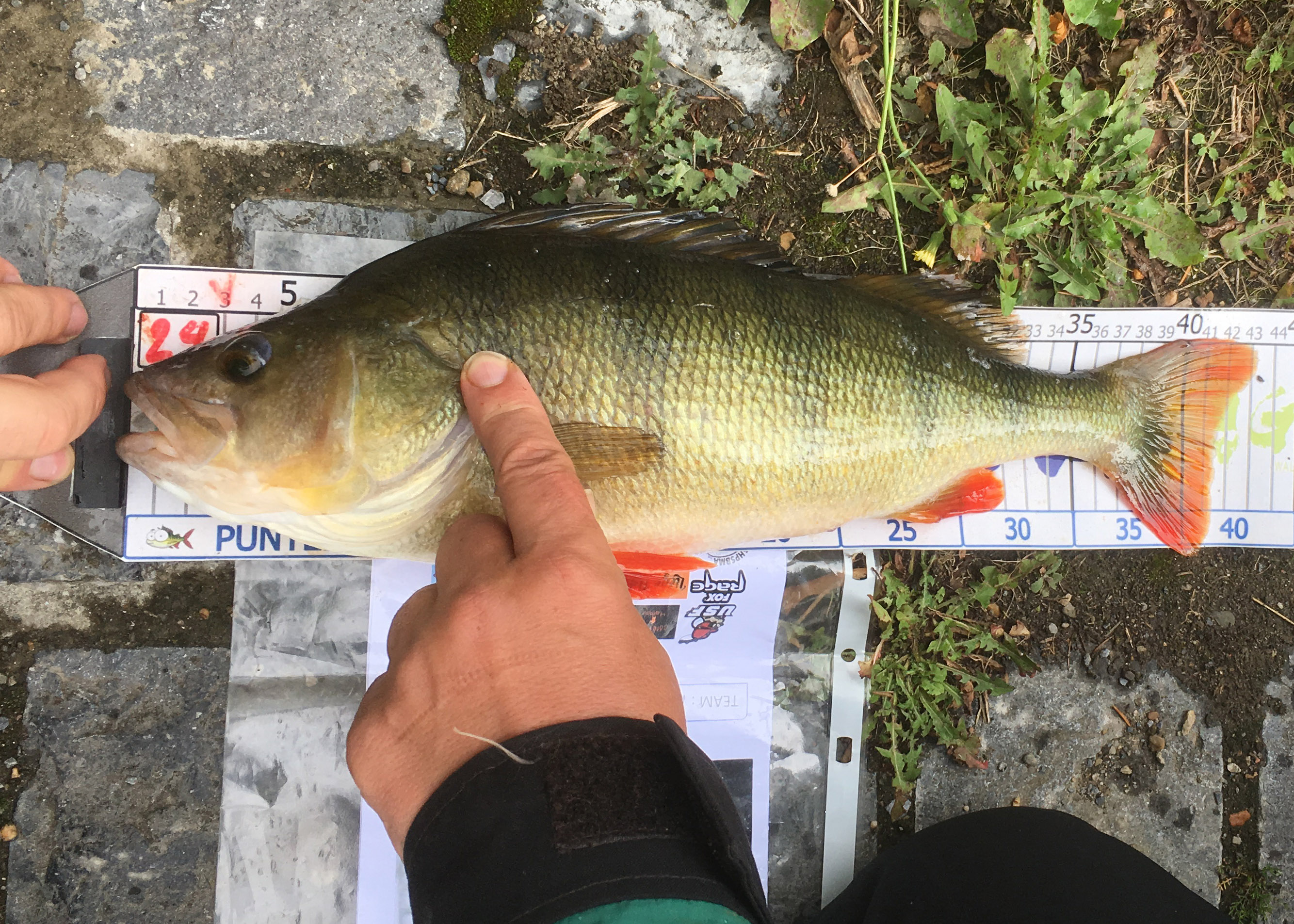 s’ Middags stond ik op de derde plaats met een zestal mooie vissen. Tijdens de korte namiddag loste ik er nog twee en werd er nog eentje bij gevangen. Ik had voor de kleine baarsjes moeten gaan maar daar had ik geen zin in. Strandde uiteindelijk op de zevende plaats, waar ik bijzonder mee tevreden ben! 😉 Er werd door iedereen mooi vis gevangen en we kunnen terugkijken op een mooie visdag, wel een hele natte! Geradbraakt in de rug (door een verkeerd stapje) en doorweekt tot in de onderbroek (door de regen 😉 ) toog ik huiswaarts om nog in alle rapte het gerief voor vandaag in de wagen te proppen, terug barbelen zoeken!