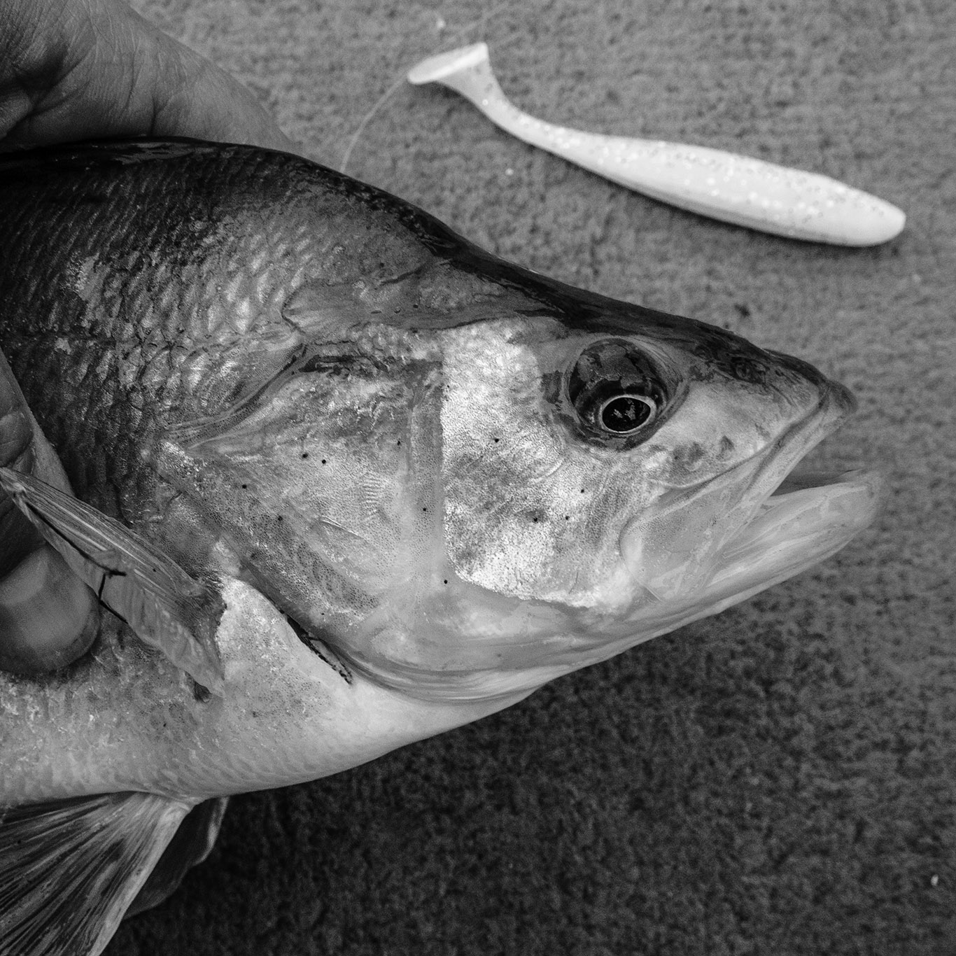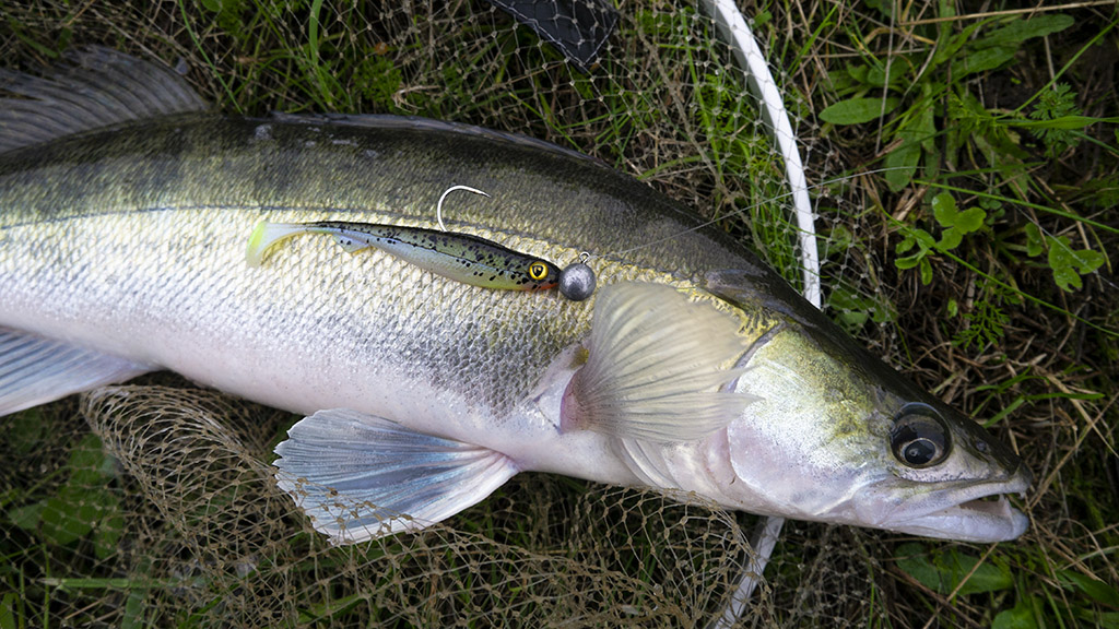Ik ben eerder in om eens iets anders te proberen dan om eindeloos hetzelfde te herhalen… Een paar weken geleden ving ik een dikke barbeel op een zeebaars shadje en veel te zware hengel. Toeval of niet, ik wilde het wel eens uitspitten of er meer in zat. Licht bepakt de rivier afstruinen, dat heeft iets. Om een lang verhaal kort te maken, deze systemen werken allen: je kan ze op het loodkopje vangen, op de dropshot en op de kickback rig. Deze laatste lijkt me na twee dagen van alles uitproberen de eenvoudigste en meest doeltreffende omdat je het kunstaas iets langer op de juiste plek kan houden en het toch nog ongehinderd en verleidelijk kan bewegen. En zo dacht ik terug aan m’n jeugd, toen we aan de Gavers met de – Kickback Rig ‘avant la lettre’ – met levende visjes op baars visten… Zelfde systeem, ander aas… Anyway, de aanbeten van barbelen zijn kurkdroog, de drils heavy… Dat je daarnaast ook lekker in de ‘mooie formaten’ snoekbaars zone vist is lekker meegenomen! Love it…