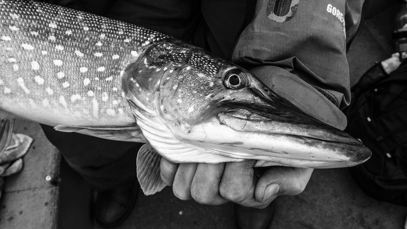 Gisterenavond nog kort gevist en ik waande me eerst in de kleuterklas met een aantal kleine snoekbaarzen… Als laatste aanbeet kreeg ik m’n beloning van de avond, een mooi beest. De foto (van de toevallige voorbijganger) zag er iets beter uit in zwart/wit…