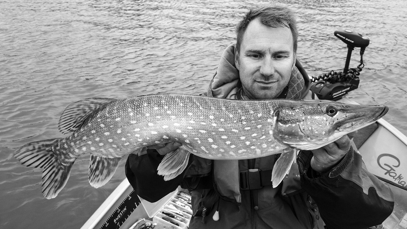Jaren geleden was ik met David, Jacques Schouten en Peter-Paul Blommers aan Logh Derg om een goede week te snoeken. Hier en daar hadden we best wat gevangen. Ik herinner me een dag aan Castlebawn Castle waar het de ene dikke na de andere was. Maar naar het eind liep het bijzonder stroef met dagen aan een stuk geen beet. ‘Dan probeer je andere manieren’: zei Jacques droog en hij ging op zoek naar grote verse voorns en zou daar driftend mee vissen, alleen in een boot. We verloren hem uit het oog en zochten ons de ganse dag te pletter naar een mooie snoek… Er toonde zich echter niks, nog geen volger en in de vooravond gingen we terug naar Killaloe op zoek naar Jacques. Eenzaam en alleen lag hij driftend te genieten van deze windere dag. Twee dobbers zeilden monotoom met de boot mee. Hij had ook nog geen beet gehad… maar daar had hij geen probleem mee… Ik hoor het me nog zeggen: ‘Kijk, hier ga ik er eens ene vange, sé!’ en ik knalde m’n grote shad richting Jacques’ boot. Het ding zonk net naast z’n boot weg en prompt haakte ik daar deze mooie metervis!… Dat kan alleen met jou, zou Frans zeggen. Te bizar voor woorden…